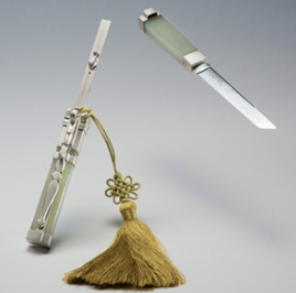 These small knives are called Eunjangdo - a silver knife that is a traditional Korean accessory that is hung from a woman’s coat strings skirt