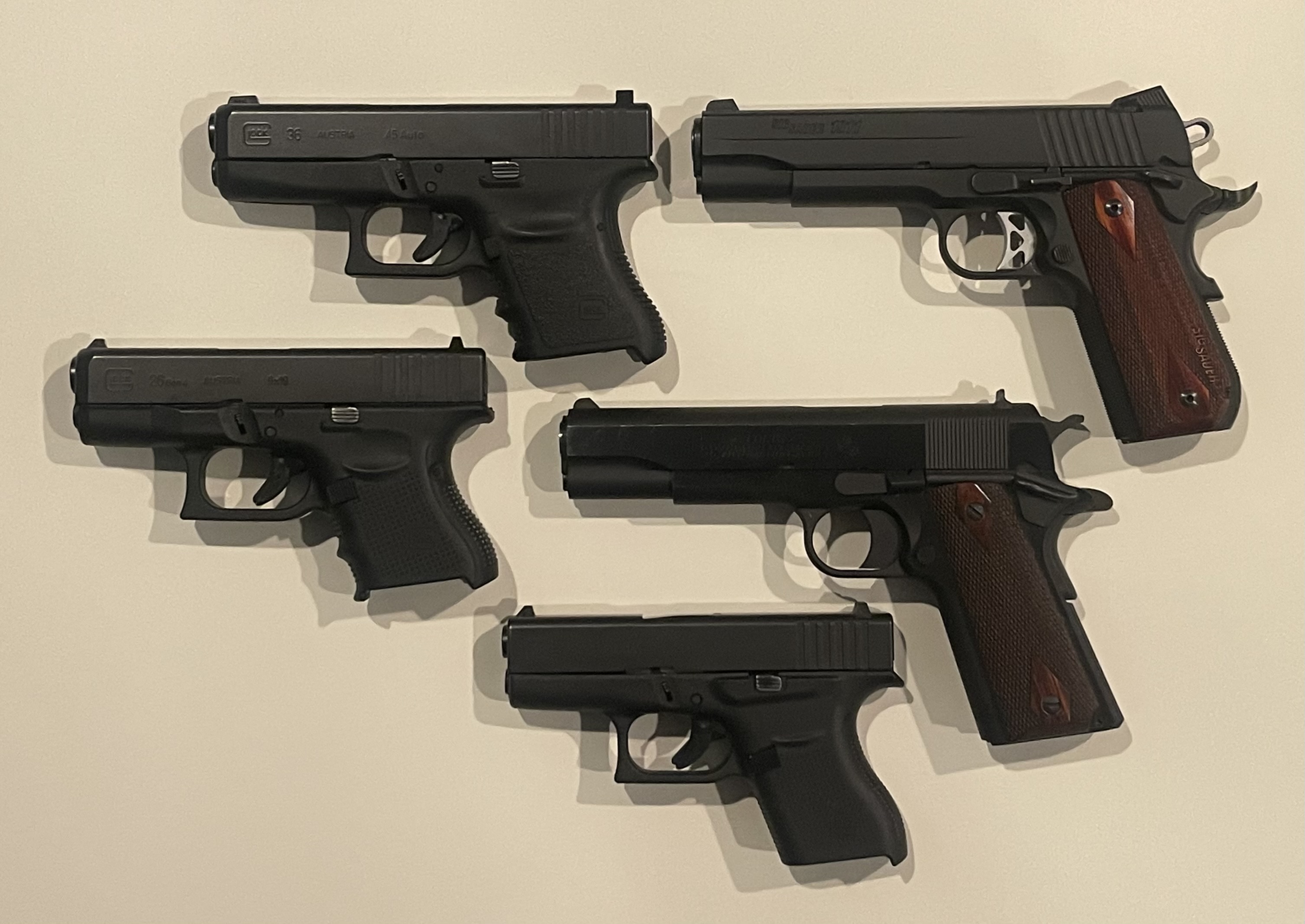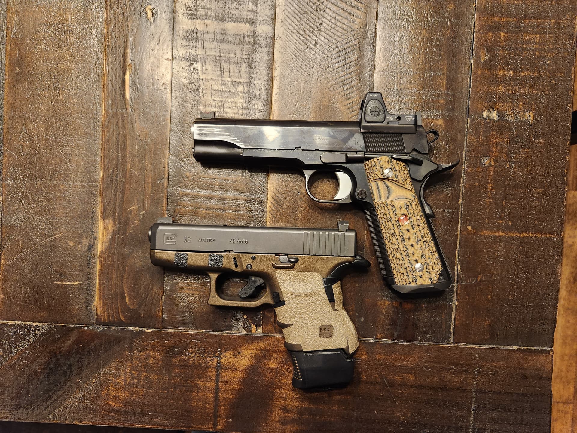 I transitioned my EDC from DA/SA to 1911/2011 starting in 2022. I have been carrying a full-size .45 1911 since this year. It is easy to carry and conceal with the right holster and belt. Since I live in a non-free state that only allows a 10-round capacity for all firearms, I love .45 round and 1911- Capacity- 8+1; I carry a spear 10-round magazine. I had an opportunity to buy a used Glock 36 1st gen with no rail. " I am on the Glock trial run." Glock 36 is subcompact 6+1 or extended mag 7+1 -single stack. I have 500 rounds, and it fits my Glock 19 holster, which is a plus because I can EDC and practice my draw from the holster with my 36.