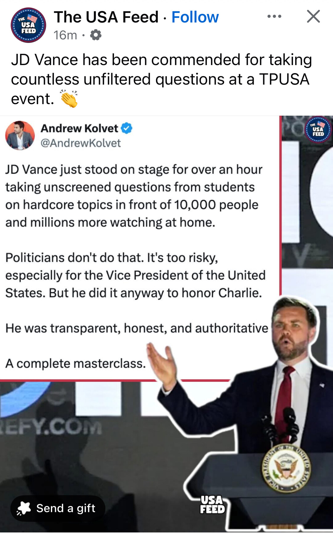 I hope that this thread let’s us discuss JD as a human, a politician, and a possible next POTUS. Dude is currently killing it…