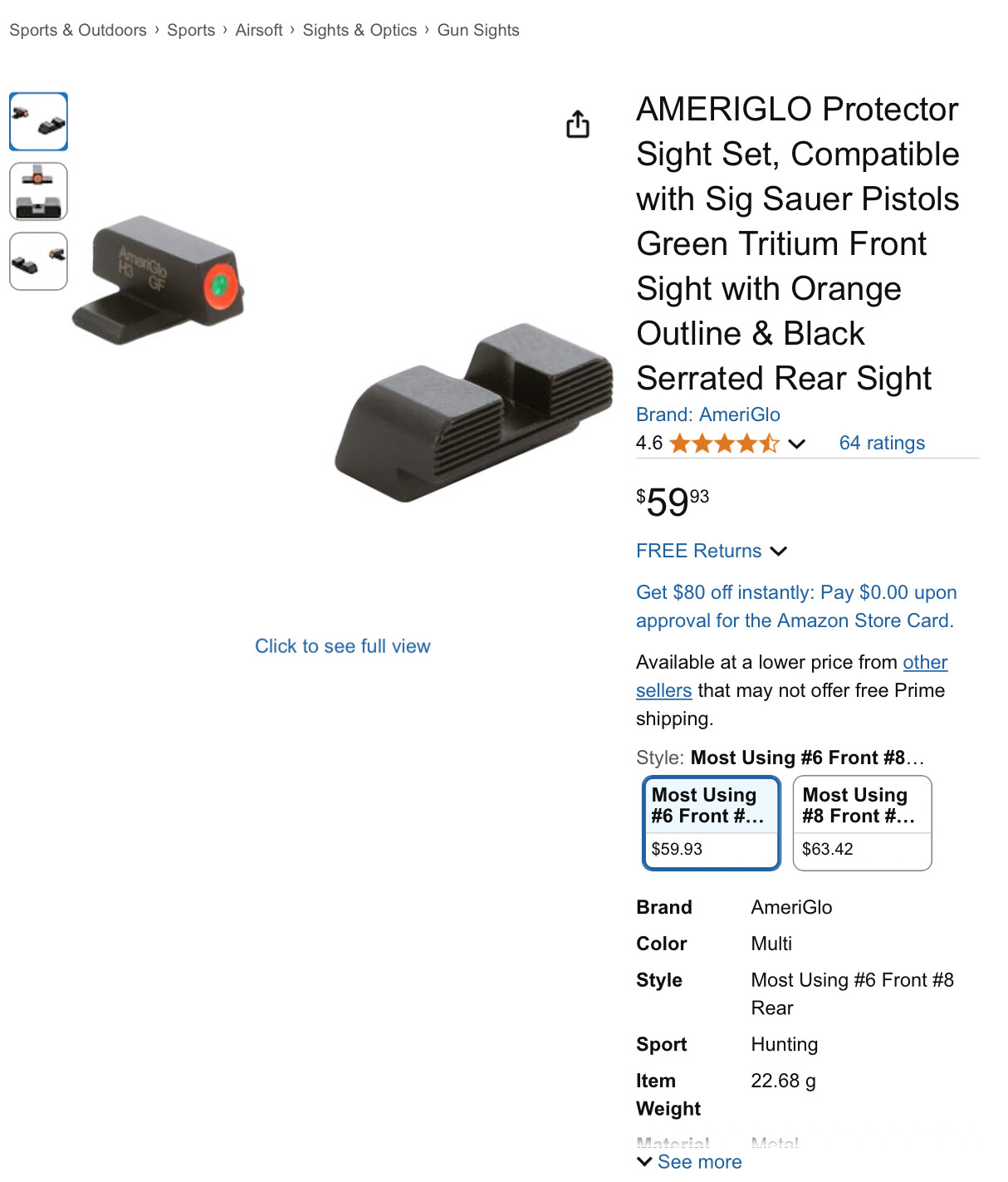 I purchased Ameriglo Protector Sights for Sig Sauer #6 Front with Orange outline / #8 Rear for a P938 thru Amazon. I immediately put the new front sight beside the old sight still installed in the slide and boy was I excited!
