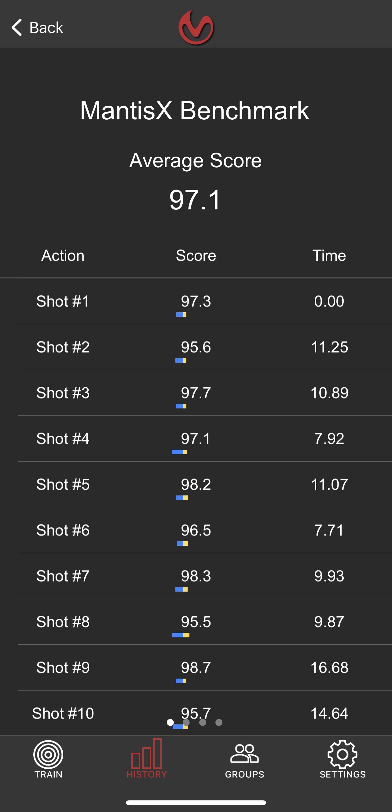 If you tend to make adjustments of grip or trigger in the last quarter to half second before release — or if you squeeze off shots while the gun is actually still in motion — those will be called out as errors. Even if your repeatable point of impact is exactly your point of aim, and your elapsed time makes you smile — MantisX is unhappy with you for lack of stillness.