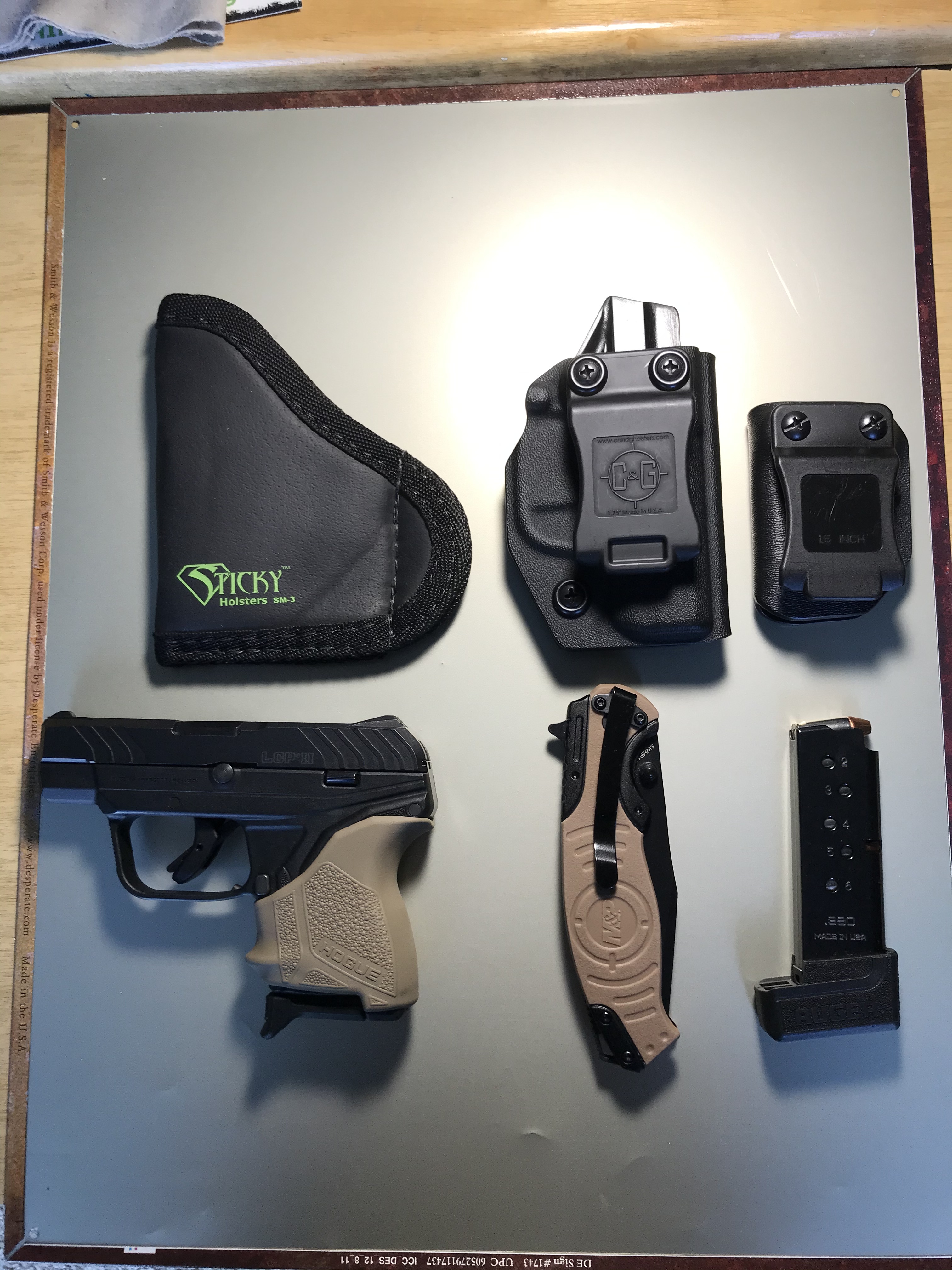 I have a Springfield 911 and a S&W 442 “We the People” edition … both have IWB and OWB holsters and I have a good ankle holster (finally!)… Springfield shipped a soft carry case and a pocket holster with my 911, and I got a DeSantis pocket holster (in the mail, TODAY actually!) for the J-frame.