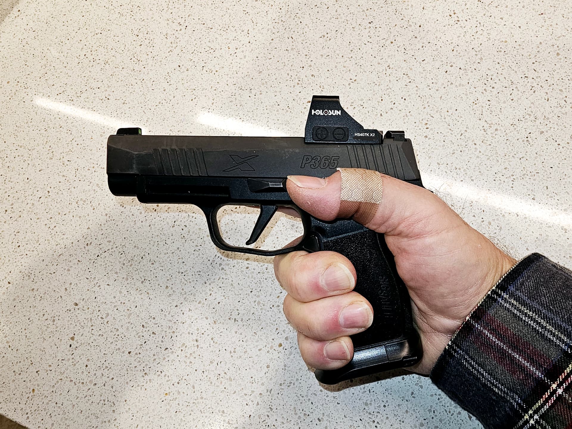 *Bought magwell from Sig _ better construction and alloy than cheap Chinese knockoff. Might also consider an extended magazine with the ‘hoof’ like protrusion on the front for your pinky; might’ve been a better option (read on).