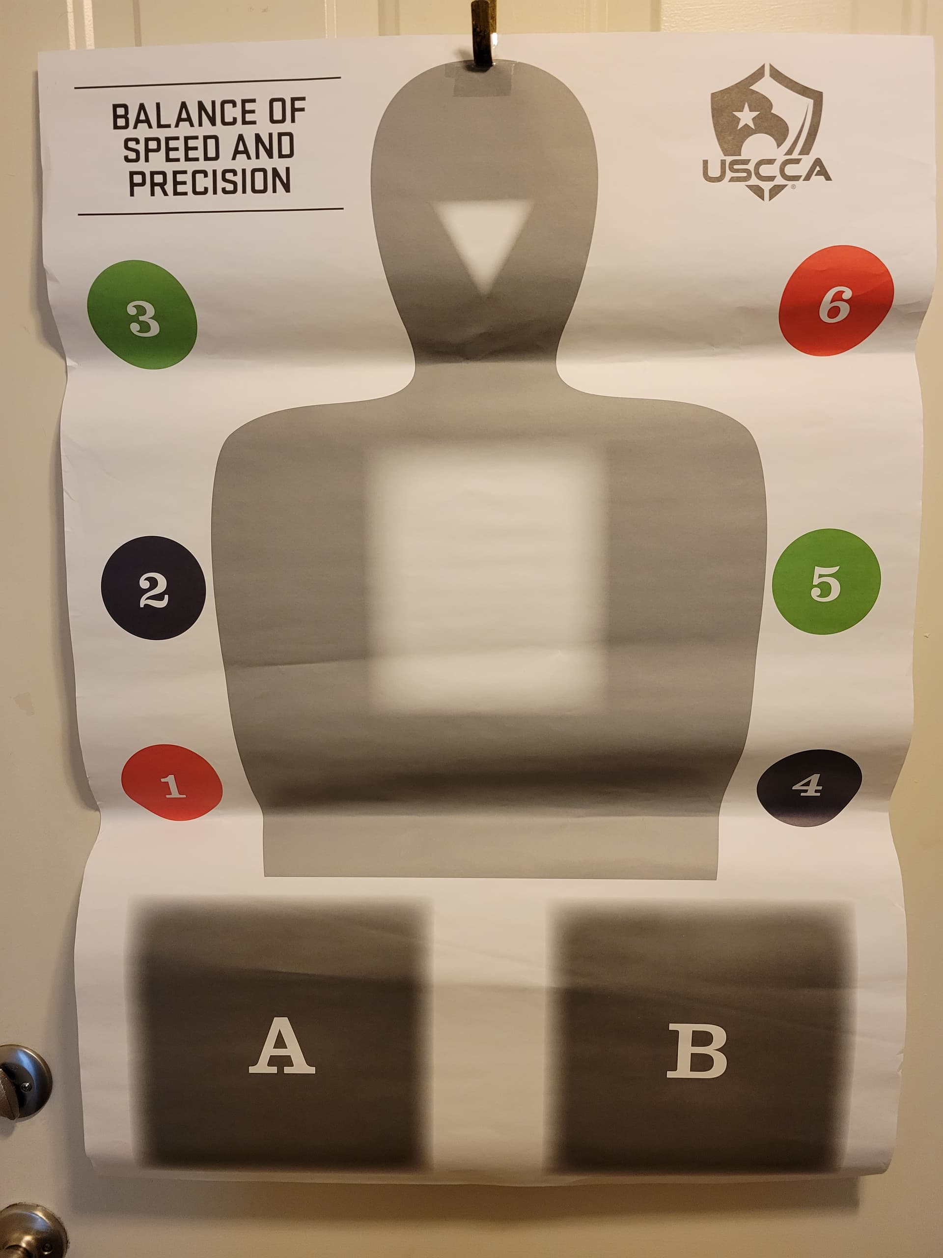 Been doing this training for a short time now. Starting out with a USCCA target. 5 & 10 yards using a Sirt Laser Training Fierarm