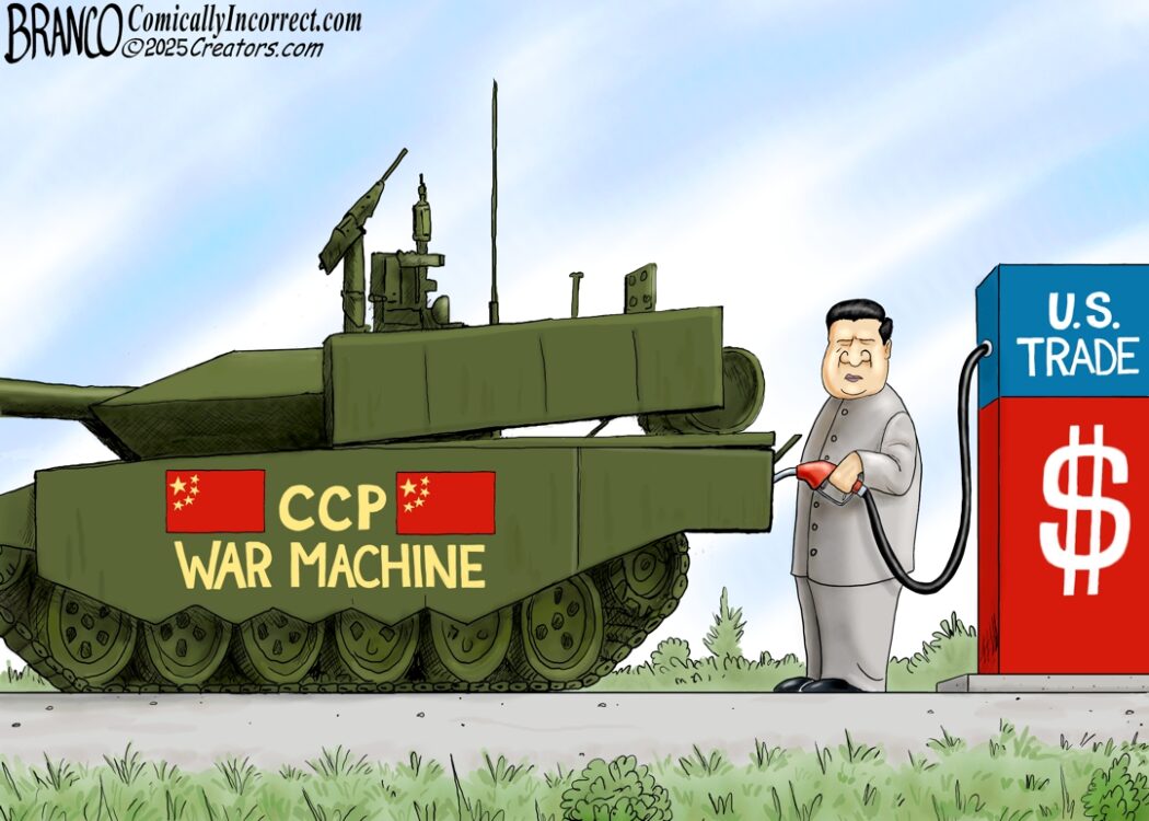 A.F. Branco Cartoon – People suspect that many Democrats and some Republicans are being paid off through CCP money and that it’s influencing their vote on China trade policies, all the while calling Trump a Putin puppet without evidence.