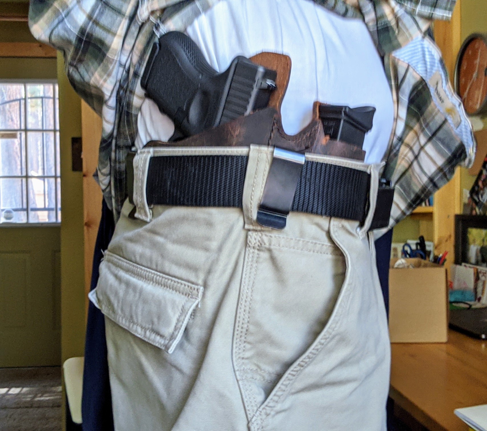 Note: the picture IS of me wearing the holster with my firearm. I had to pull my outer shirt up for the picture.