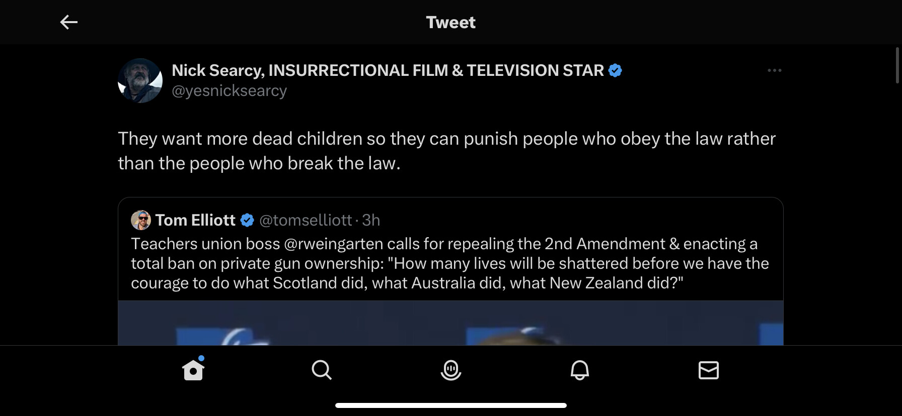 Again with the horrible people on Twitter. This one is interesting in one way, though. He acknowledges that anti-2A gun laws infringe on rights. He’s not calling for “common sense gun laws” (whatever that means), he’s explicitly calling for infringements on Constitutional rights in the hope that it might prevent an occasional crime. It’s the dangerous old line “If only one life is saved, it’s worth it.”